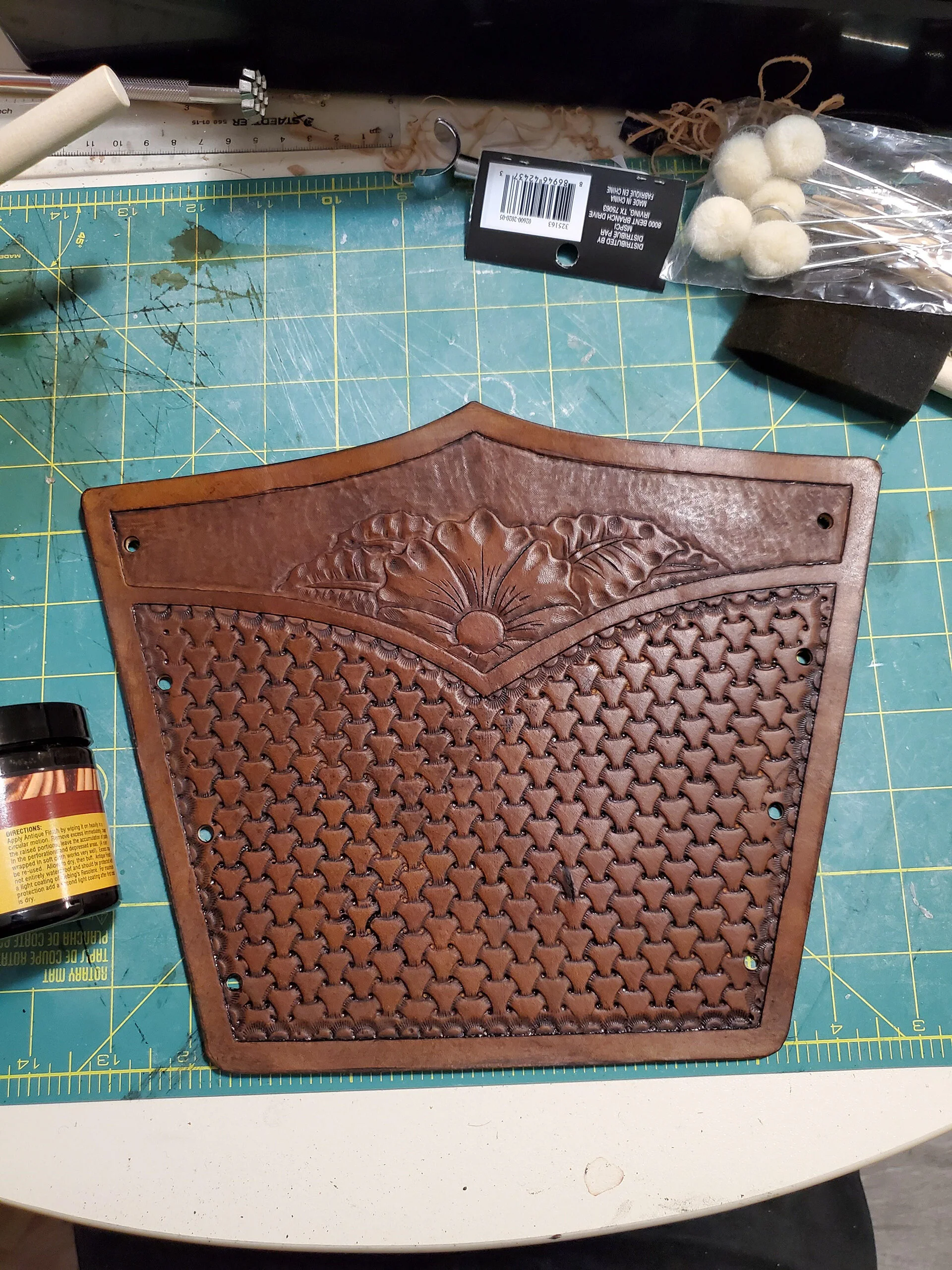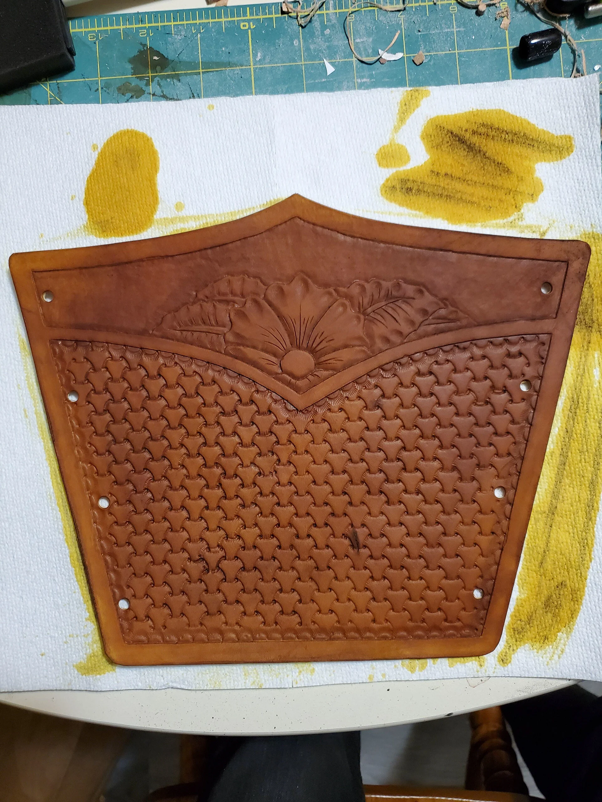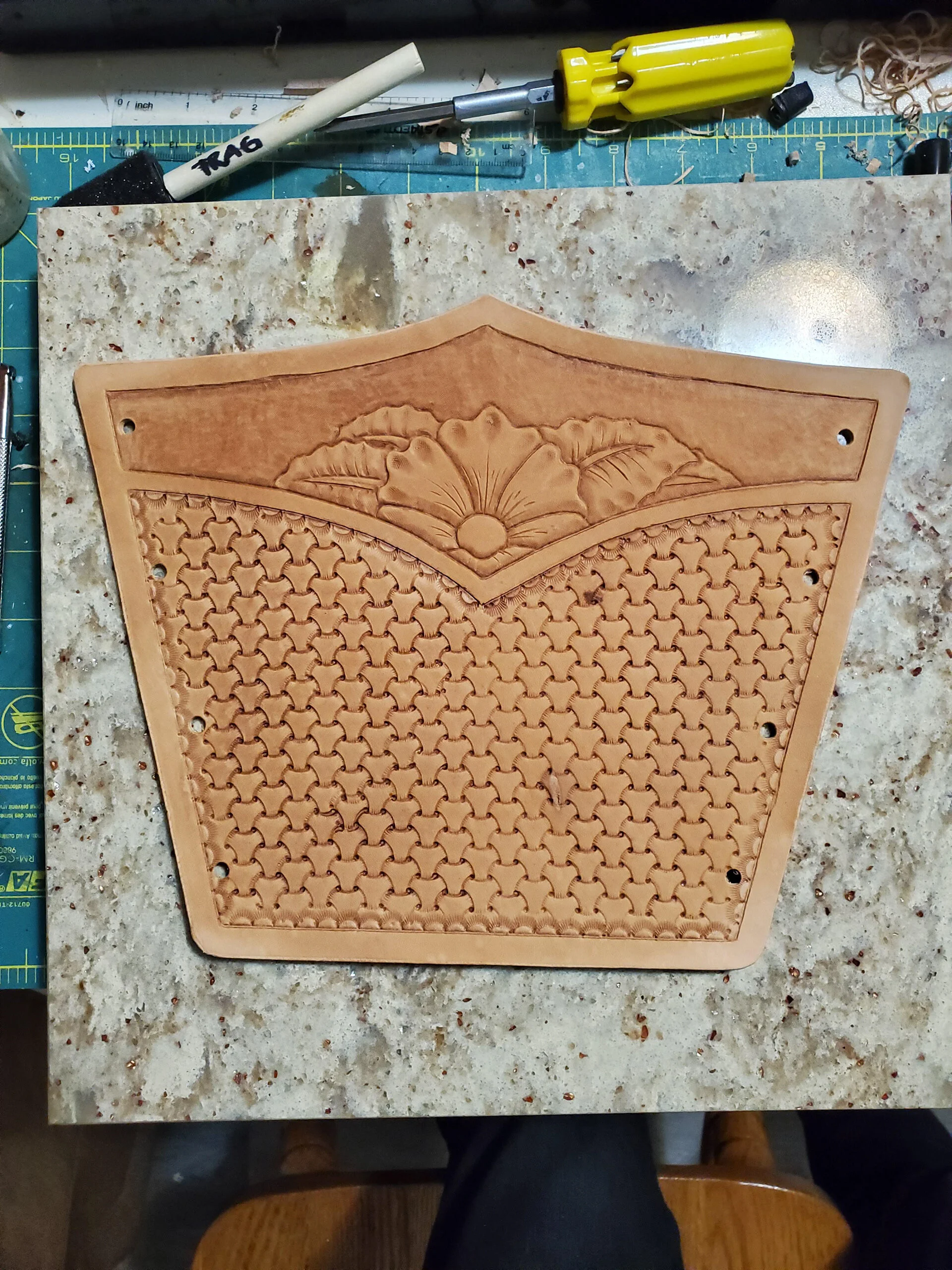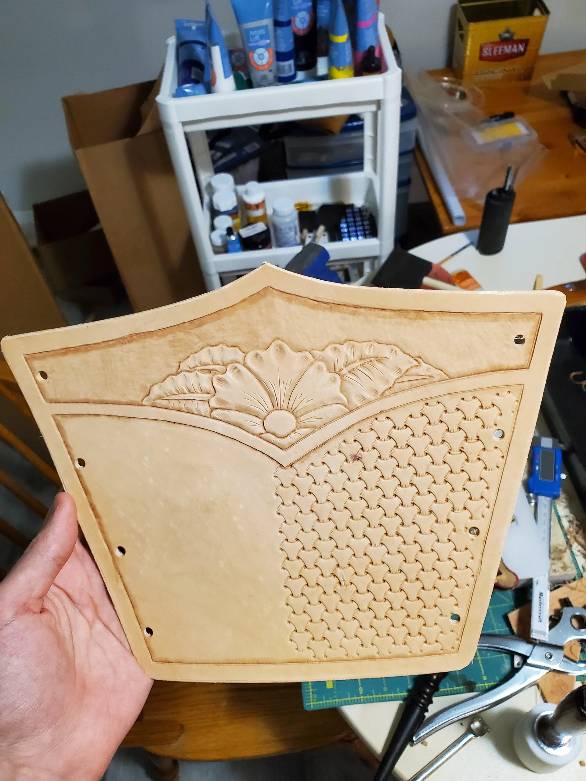 Leather Bracers made from 8oz Veg Tan Leather with floral tooling and basket weave.